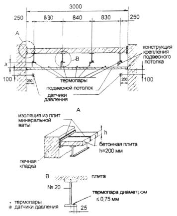 потолка термопары размещаются на каждом промежутке между балками (исключая