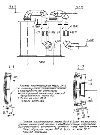 антикоррозионной защиты аппаратов, газоходов и трубопроводов - 1:2 - 1:20. 3.3. На чертеже разреза
