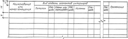строительных работ. ** Под строительным изделием понимают элемент строительной: конструкции (колонна, ферма, ригель, плита перекрытия, панель стены, арматурный каркас и др.), изготовляемый вне места его установки. 1. ОБЩИЕ ТРЕБОВАНИЯ1.1. Архитектурно-строительные рабочие чертежи выполняют в соответствии с требованиями ГОСТ 21.101, а также настоящего стандарта. При выполнении рабочих чертежей металлических конструкций следует руководствоваться соответствующими стандартами Системы проектной документации для строительства (СПДС). 1.2. Рабочие чертежи архитектурных решений и строительных конструкций, предназначенные для производства строительных и монтажных работ, выполняют в составе основных комплектов, которым присваивают марки в соответствии с ГОСТ 21.101. По рабочим чертежам марки АР, при необходимости, составляют спецификацию оборудования по ГОСТ 21.110. 1.3. Условные графические изображения строительных конструкций и их элементов приведены в приложении 1. 1.4. На архитектурно-строительных чертежах указывают характеристики точности геометрических параметров зданий, сооружений, конструкций и их элементов по ГОСТ 21.113. Требования к точности функциональных геометрических параметров зданий, сооружений и конструкций должны быть увязаны с требованиями к точности изготовления изделий (элементов конструкций), разбивки осей и установки элементов конструкций путем расчета точности по ГОСТ 21780. 1.5. На архитектурно-строительных, рабочих чертежах (на изображениях фундаментов, стен, перегородок, перекрытий) указывают проемы, борозды, ниши, гнезда и отверстия с необходимыми размерами и привязками. 2. ОСНОВНОЙ КОМПЛЕКТ РАБОЧИХ ЧЕРТЕЖЕЙ АРХИТЕКТУРНЫХ РЕШЕНИЙ2.1. В состав основного комплекта рабочих чертежей архитектурных решений включают: 1) общие данные по рабочим чертежам; 2) планы этажей, в т. ч. подвала, технического подполья, технического этажа и чердака; 3) разрезы; 4) фасады; 5) планы полов (при необходимости); 6) план кровли (крыши); 7) схемы расположения элементов сборных перегородок*; 8) схемы расположения элементов заполнения оконных и других проемов*; 9) выносные элементы (узлы, фрагменты); 10) спецификации к схемам расположения в соответствии с ГОСТ 21.101. 2.2. Общие данные по рабочим чертежам 2.2.1. В состав общих данных по рабочим чертежам, кроме сведений предусмотренных ГОСТ 21.101, включают ведомость отделки помещений по форме 1 (при отсутствии основного комплекта рабочих чертежей интерьеров). Форма 1 Ведомость отделки помещений Площадь, м2 Примечания: 1. Количество граф