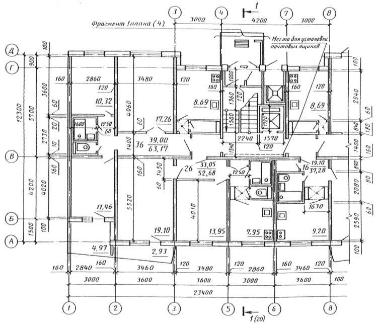 1. Перегородка из стеклоблоков Примечание. На чертежах в масштабе 1:200 и
