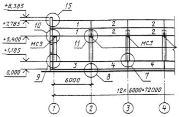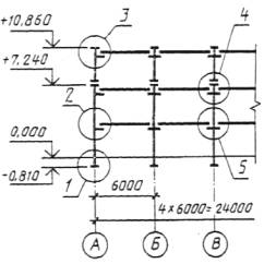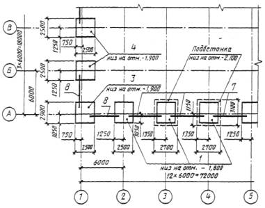 3.2. В состав общих данных по рабочим чертежам кроме сведений, предусмотренных ГОСТ 21.101, включают: 1) сведения о нагрузках и воздействиях, принятых для расчета конструкций здания или сооружения; 2) сведения о грунтах (основаниях), уровне и характере грунтовых вод, глубине промерзания*; 3) указания о мероприятиях по устройству подготовки под фундаменты и об особых условиях производства работ*; 4) сведения о мероприятиях по антикоррозионной защите конструкций (при отсутствии основного комплекта рабочих чертежей марки А3); 5) указания о мероприятиях при производстве работ в зимнее время. 3.3. Схемы расположения элементов конструкций 3.3.1. На схеме расположения элементов конструкций (далее - схеме расположения) указывают в виде уловных или упрощенных графических изображений элементы конструкций и связи между ними. 3.3.2. Схему расположения выполняют для каждой группы элементов конструкций, связанных условиями и последовательностью производства строительных работ. Примеры: 1. Схема расположения элементов фундаментов и фундаментных балок. 2. Схема расположения блоков стен подвала (развертка блочных стен подвала). 3. Схема расположения колонн, связей по колоннам, подкрановых балок. _____________ * Приводят при отсутствии их в технических