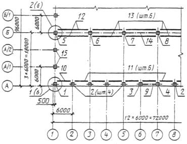 Примечание. Изображение А - для фермы железобетонной, Б - для фермы
