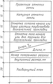 очертаниями внутренних и наружных габаритов - сплошной тонкой линией; Трубопроводы бесканальной прокладки - контурными