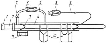 закрепленного на его конце, или фала и двух карабинов, закрепленных на обоих