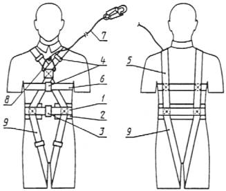 ремня; 4 - пряжка лямки; 5 - лямка наплечная;