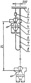- жесткая опора; 2 - сбрасыватель; 3 - соединительное устройство; Рисунок 10 - Схема испытания лямочных поясов типов В,