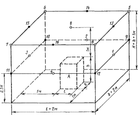 точек измерения должна быть не менее 1,5 м от пола помещения. Зона размещения точек измерения