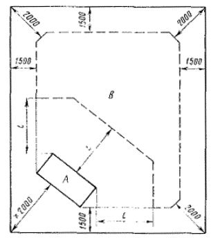 поверхностей должно быть не менее 3 м. Черт. 1. Схема размещения