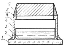 металлическая цилиндрическая обойма; 6 - смесь парафина с канифолью;