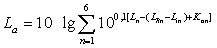 где K an -поправка по частотной шкале А шумомера согласно ГОСТ 17187-81 для n -октавной полосы частот, равная значению частотной характеристики на n -й частоте, определяемая по табл. 7.