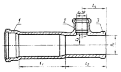 1 - раструб типа II по ГОСТ 6942.2-80; 2 - раструб типа I по ГОСТ 6942.2-80; 3 - хвостовик по ГОСТ 6942.2-80 Размеры в мм