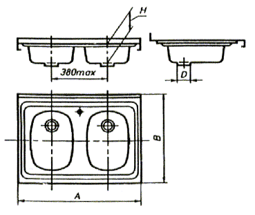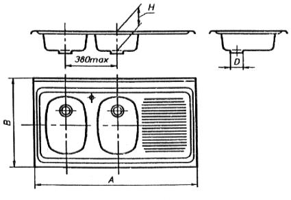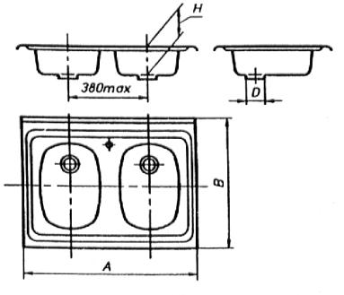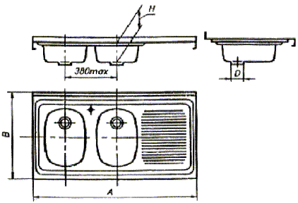 стали с двумя чашами, накладная (тип МН2) Рисунок 4 - Мойка из нержавеющей