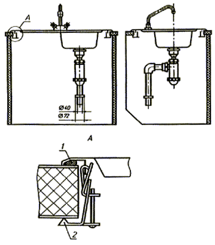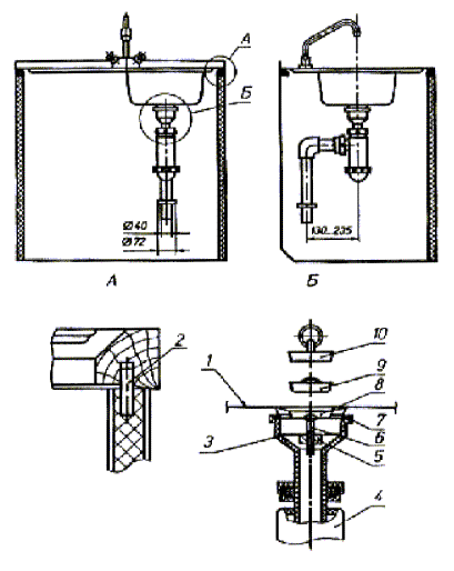 перелив), водоразборная арматура, детали крепления мойки к подстолью и детали