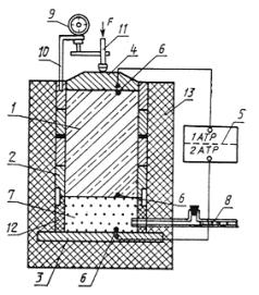нагружения образца грунта; 12 - поддон обоймы; 13 -