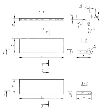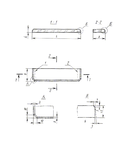 ДЛЯ ЖИЛЫХ, ОБЩЕСТВЕННЫХ И ВСПОМОГАТЕЛЬНЫХ ЗДАНИЙ 1 - вырез; 2 - срез торца; 3 - технологический уклон не более 3 мм Черт. 1 ПОДОКОННЫЕ ПЛИТЫ ДЛЯ ПРОИЗВОДСТВЕННЫХ ЗДАНИЙ 1 - технологический уклон не более 2 мм Черт. 2 Таблица 1