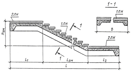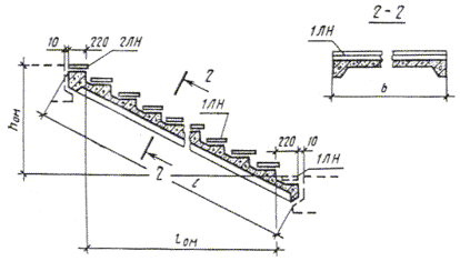 Лестничные марши (далее - марши) подразделяют на следующие типы: ЛМ - плоские без