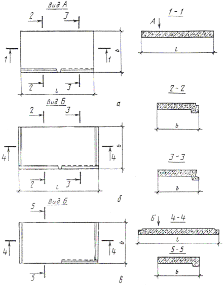 а - площадки длиной 2200 и 2800 мм; б - то же, длиной 2380 и 2980 мм; в - конечная площадка 2ЛП - ребристые