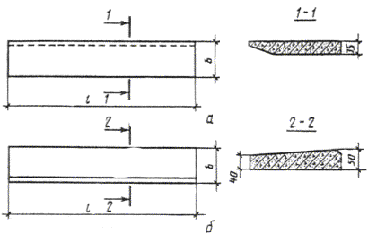 а - накладная проступь по серии 1.251.1-4, выпуск 1; б - то же, по серии 1.050.1-2, выпуск 1; 1 - скос для конечной проступи 1.4.