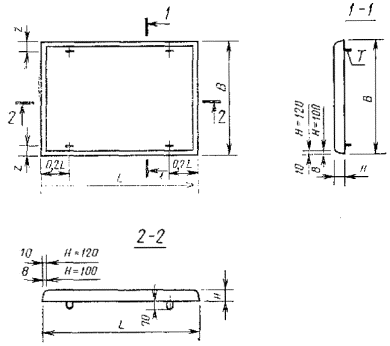 плит должны соответствовать указанным на черт. 1-3 и в табл. 1. Примечание. Допускается до 1 января 1986 г. изготовлять на действующем оборудовании плиты общим видом, отличным от указанного на черт. 1-3, при соблюдении всех остальных требований, установленных настоящим стандартом. 1.3. Плиты типов 1П и 2П