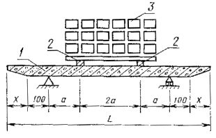 подкладки, расположенные на расстоянии 0,25 длины плиты от каждого ее торца. Толщина подкладок должна
