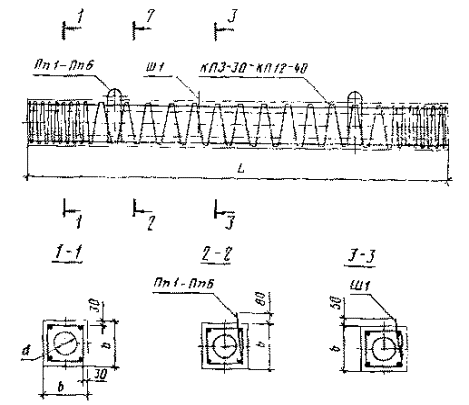 Таблица 4 Ведомость стержней на каркасы марок КП3-30 ÷ КП12-40