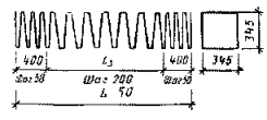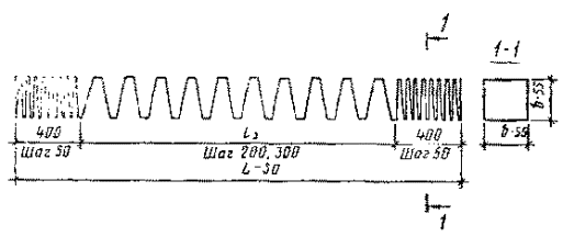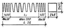 Поперечная арматура в виде спирали из проволоки диаметром 5 мм должна быть привязана вязальной проволокой к продольной арматуре в каждом четвертом пересечении с тем, чтобы шаг спирали был зафиксирован. Шаг спирали по обоим концам сваи на длине 400 мм должен быть равным 50 мм. В средней части сваи шаг