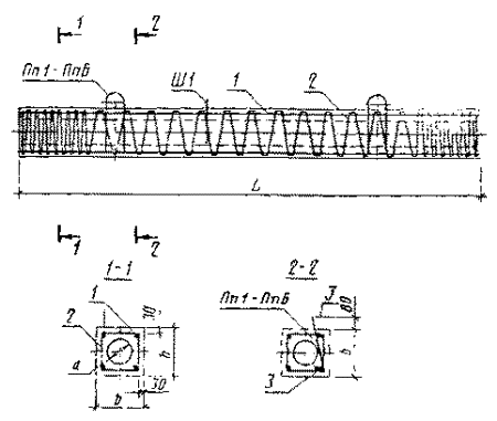 вид арматурного каркаса показан на черт. 3. Спецификация арматурных