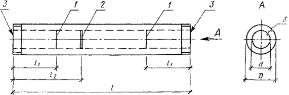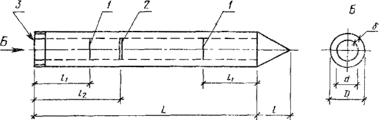полоса); 2 - место строповки при подъеме на копер (двойная полоса); 3