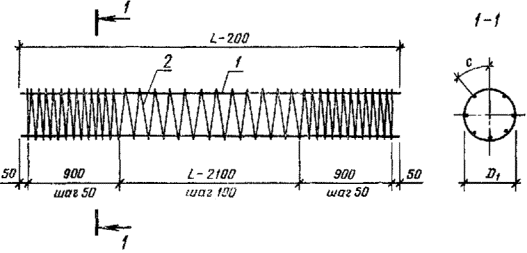 концов каркаса спираль должна быть приварена в каждом пересечении к продольным