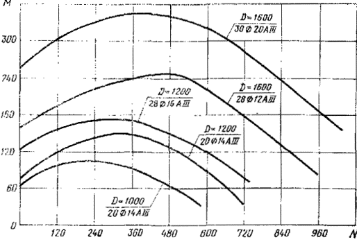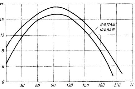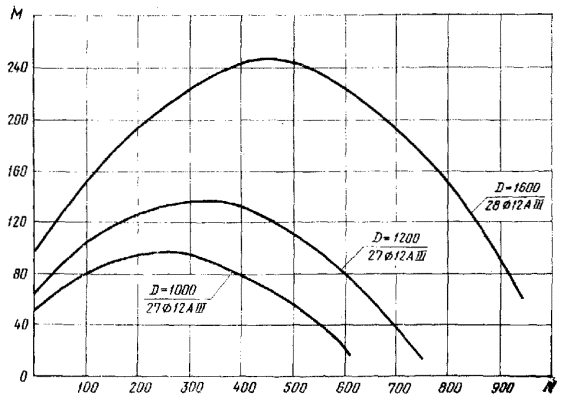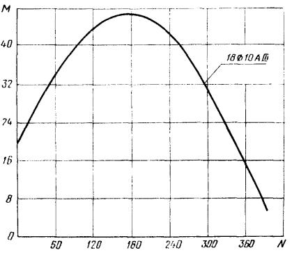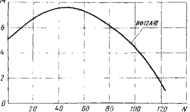 обозначения: N - нормальная сила, тс, и М - изгибающий момент,