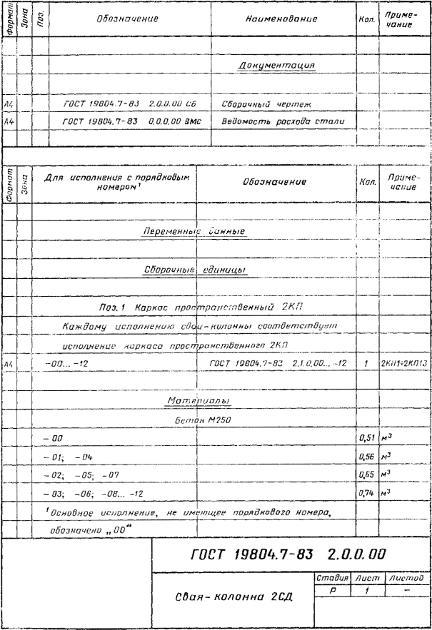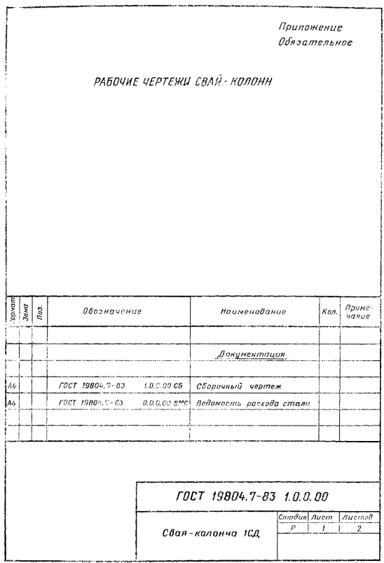 свай-колонн, основные размеры и показатели должны соответствовать указанным в табл. 2. 1.2. Сваи-колонны