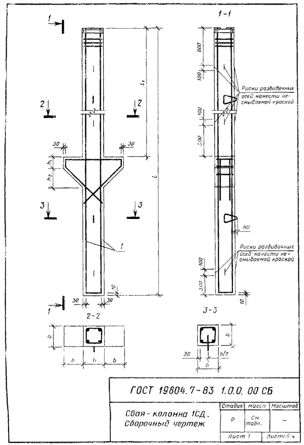 сваи-колонны должны быть нанесены риски разбивочных осей. 2.4.4. Подъем свай-колонн на