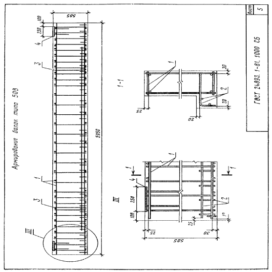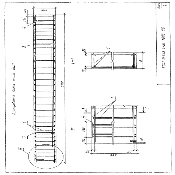 строительства от 14 июля 1981 г. № 119 срок введения установлен с 01.01 1983 г. 1. Настоящий стандарт распространяется на сборные железобетонные обвязочные балки координационной длиной 6,0 м типов БОП и БОВ и устанавливает требования к их армированию. 2. Конструкция балок, технические требования и технические показатели - по ГОСТ 24893.0-81. 3. Армирование балок должно соответствовать указанному на листах 1 - 5 сборочного черт. 1000 СБ ГОСТ 24893.1-81. Армирование балок для зданий с расчетной сейсмичностью 7 - 9 баллов должно соответствовать указанному на листах 1 - 5 сборочного черт. 2000 СБ ГОСТ 24893.1-81. 4. Спецификация арматурных и закладных изделий на одну балку приведена на листах 1 - 2 черт. 1000; выборка стали - на листе 1 черт. 0000 ВС ГОСТ 24893.1-81. Спецификация арматурных и закладных изделий на одну балку, предназначенную для зданий с расчетной сейсмичностью 7 - 9 баллов, приведена на листах 1 - 3 черт. 2000; выборка стали на листе 2 черт. 0000 ВС ГОСТ 24893.1-81. 5. Арматурные и закладные изделия для балок по ГОСТ 24893.2.81. 6. Правила приемки, методы контроля и испытаний, маркировка, хранение, транспортирование и гарантии изготовителя балок - по ГОСТ 24893.0-81. |