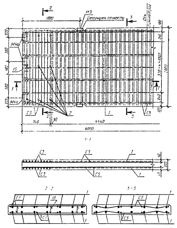 1 - напрягаемая арматура; 2 - крепление сеток С3