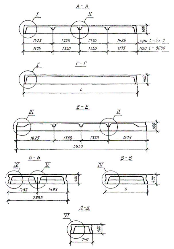 Дата введения 01.01.88 Настоящий стандарт распространяется на железобетонные ребристые плиты высотой 400 мм, изготовляемые из тяжелого или легкого бетона и предназначенные для перекрытий производственных зданий промышленных предприятий и сооружений различного назначения с шагом несущих конструкций 6 м. Плиты изготовляют по рабочим