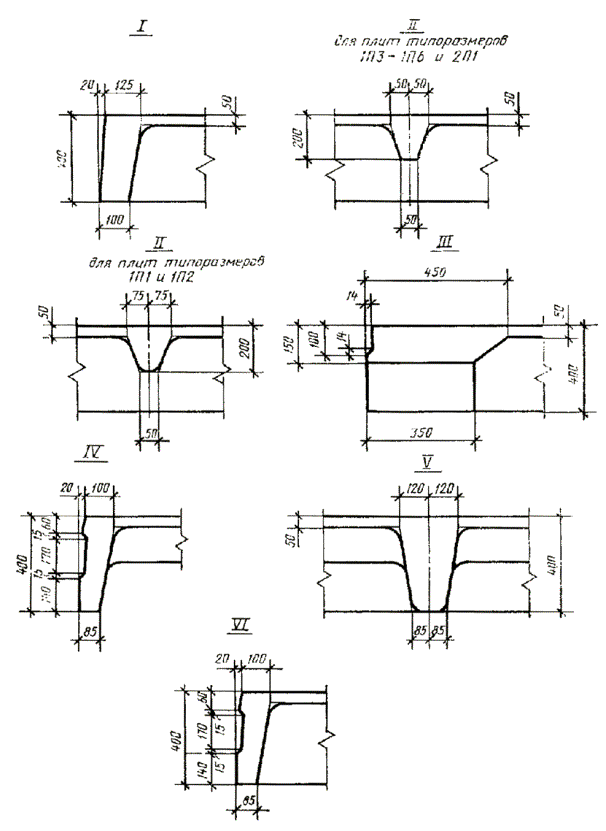 плиты типоразмеров 1П1-1П6 с вутами в местах сопряжения продольных и торцевых