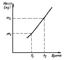 испытания 2.4.1. В сосуд закладывают влагопоглощающее вещество по черт. 1, зазор между образцом и стенкой сосуда заполняют герметизирующей пастой. Кольцеобразный край верхней поверхности образца покрывают герметизирующей пастой до размера, соответствующего открытой нижней поверхности образца. 2.4.2. Подготовленные к испытанию 10 сосудов с образцами взвешивают с точностью до ± 1 мг или ± 10 мг в зависимости от размеров образца и выдерживают в шкафу для кондиционирования при температуре (20 ± 0,5) °С и относительной влажности воздуха jе (80 ± 2) %. 2.4.3. Сосуды с образцами взвешивают каждые 24 ч и определяют количество водяного пара, прошедшего через образцы. 2.4.4. Взвешивания повторяют до тех пор, пока изменение массы за единицу времени не будет постоянным. Насыщение водой влагопоглощающего вещества не должно превышать 5 % исходного количества. При насыщении, превышающем 5 %, испытание образцов повторяют, причем сосуд наполняют новым количеством влагопоглощающего вещества. 2.4.5. Результаты измерений и взвешивания каждого образца записывают. 2.5. Обработка результатов испытания 2.5.1. По данным отдельных взвешиваний строят график зависимости изменения массы влагопоглощающего вещества от времени (черт. 2). Для определения коэффициента паропроницаемости используют данные взвешиваний после появления постоянного диффузионного потока, что на черт. 2 изображено в виде прямой линии. 2.5.2. Коэффициент паропроницаемости (dm), кг × м-2 с-1 Па-1, вычисляют для каждого образца по формуле
