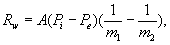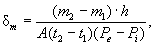 где m2 - m1 - количество водяного пара, проходящего через образец за интервал времени от t1 до t2, кг; h - толщина образца, м; А - площадь испытуемого образца, м2; t2 - t1 - интервал времени между двумя взвешиваниями, с; Ре - Pi - разность значений парциального давления водяного пара на образце, Па; Ре - парциальное давление водяного пара в воздухе температурой 20 °С и относительной влажностью jе = 80 %, Па, вычисляемое по формуле