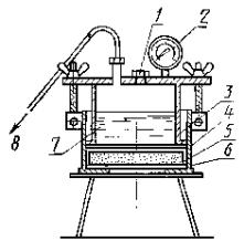 5 - цементно-песчаный образец; 6 - металлическое кольцо; 7 - вода; 8 - к баллону со сжатым воздухом ИНФОРМАЦИОННЫЕ ДАННЫЕ 1. РАЗРАБОТАН И ВНЕСЕН