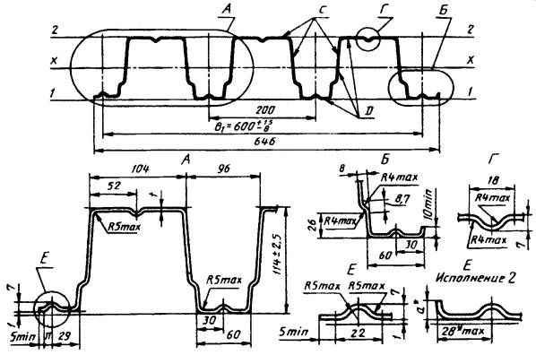 лист типа Н высотой 114 мм, шириной 600 мм ________________ * Размер технологический, а ³ 0.