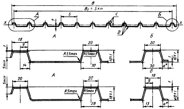 лист типа С высотой 10 и 18 мм ________________ * Размер технологический, а ³ 0. Таблица 6