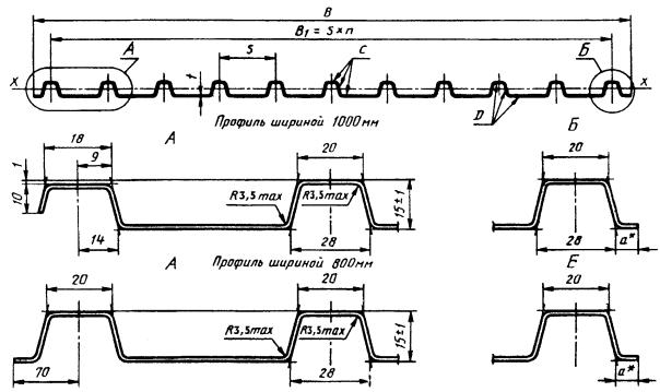 ширины профилированных листов и масса 1 м должны соответствовать указанным на
