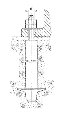 устанавливается до бетонирования фундамента. Верхняя шпилька ввертывается в