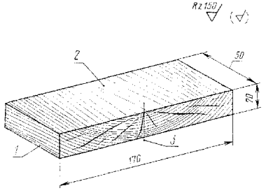 поверхности образца должна соответствовать указанной на черт. 2. 1 - наружная пласть образца; 2