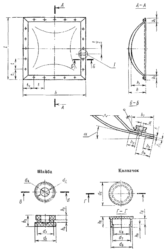 отверстий в опорной площадке купола, диаметры шайб и колпачков определяют
