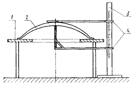 для определения высоты оболочек купола 1 - стол; 2 - купол; 3 - измерительная