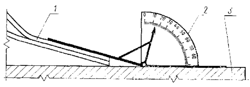 определения угла наклона опорной площадки купола 1 - купол; 2 - угломер; 3 - стол. Черт. 4 4.2. Высоту