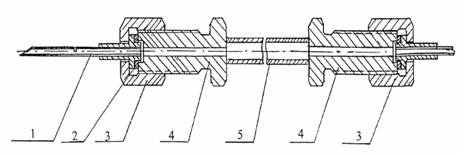 1 - игла; 2 - прокладка алюминиевая; 3 - накидная гайка; 4 - штуцер; 5 - корпус патрона-концентратора
