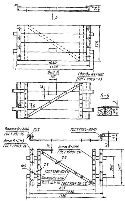 оборудовать дополнительными треугольниками брусками в соответствии с черт.5. 2.9. Строповочные крючья и детали, к которым они привариваются, должны