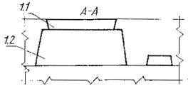 1. Конструкция проемообразователей с двусторонними уклонами План формы При формовании панели лицевой стороной вниз При формовании панели лицевой стороной вверх 1 - проемообразователь оконного проема; 1.1 - щит; 1.2 - рамка; 2 - проемообразователь оконного и дверного проемов; 3 - вкладыш, образующий штрабу 2. Конструкция